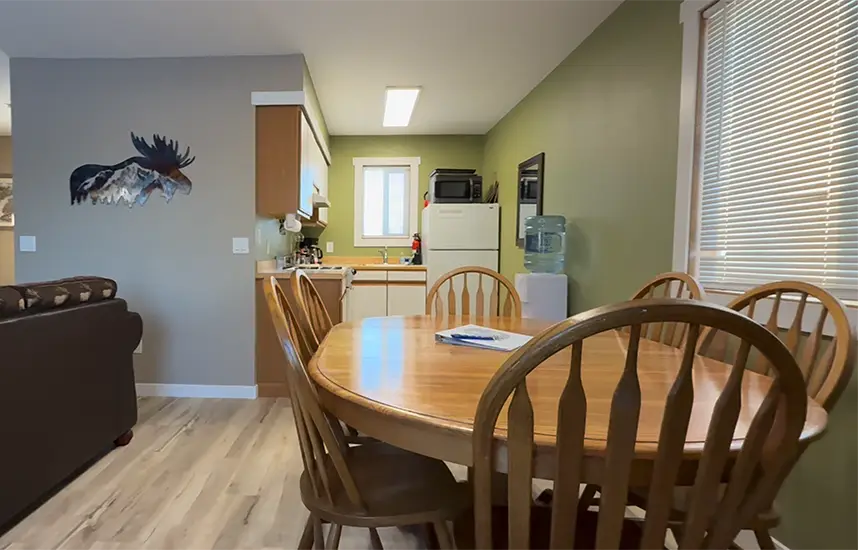 Moose Tracks is a single unit, private entrance, three-bedroom, one and a half bath vacation rental at Big Dan’s Riverfront Lodge. It’s easy to accommodate groups with the bedrooms and bed configurations. Amenities include nearly everything you need. Big Dan’s properties are well stocked with cookware, dishes, utensils and cooking equipment. An easy trip to the grocery store is all you need to prepare most of your food, but there are plenty of nearby restaurants to hit if you aren’t feeling like cooking. We think you’ll want to eat some of the fresh fish you catch right from our property!